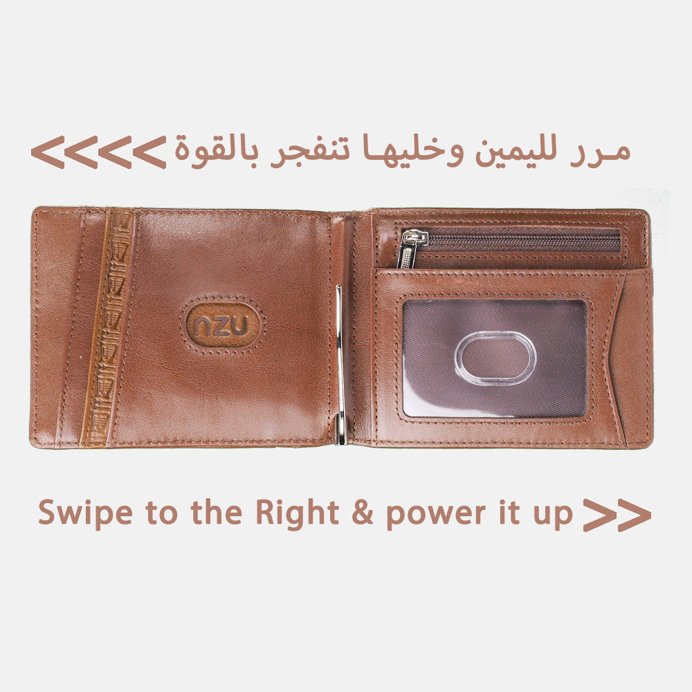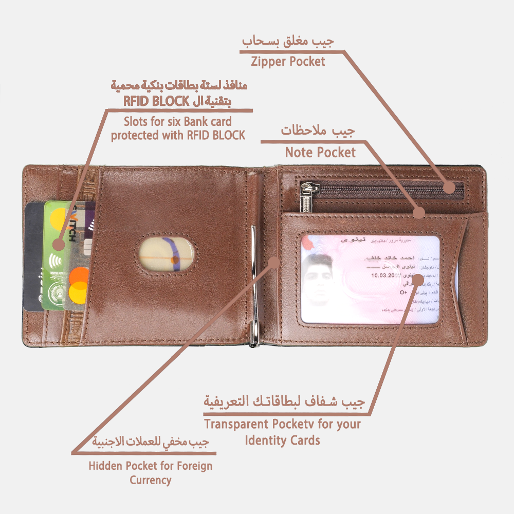 • 🪪 جيب شفاف عالي الوضوح من PVC لعرض بطاقتك الوطنية بسهولة ودون الحاجة لفتح المحفظة.