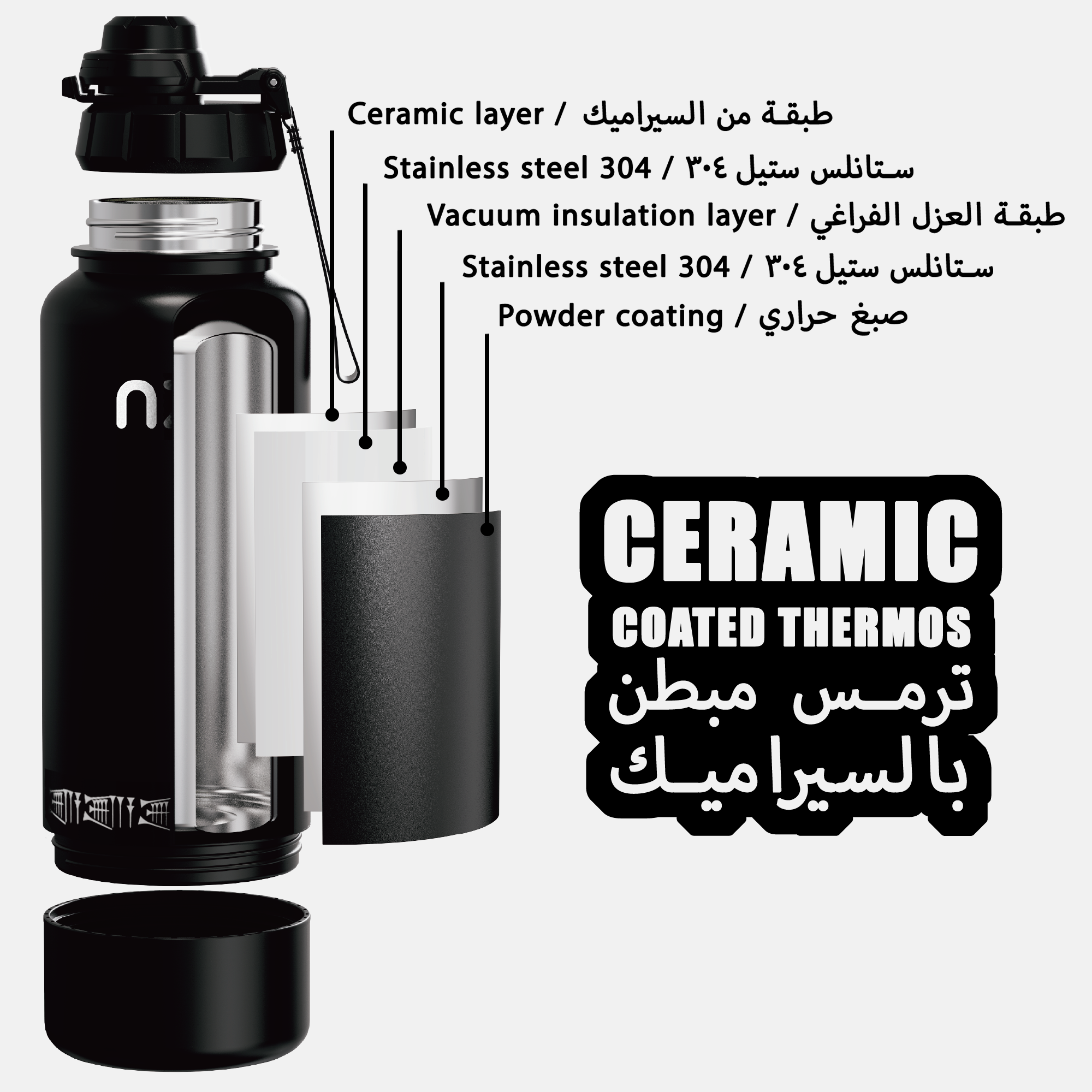 أول مطارة في العراق مبطنة بطبقة سيراميك للحفاظ على النكهة وتعزيز العزل، وبجسم مصنوع من ستانلس ستيل 304 المعتمد من الـFDA لمتانة أعلى واستخدام صحي وآمن.